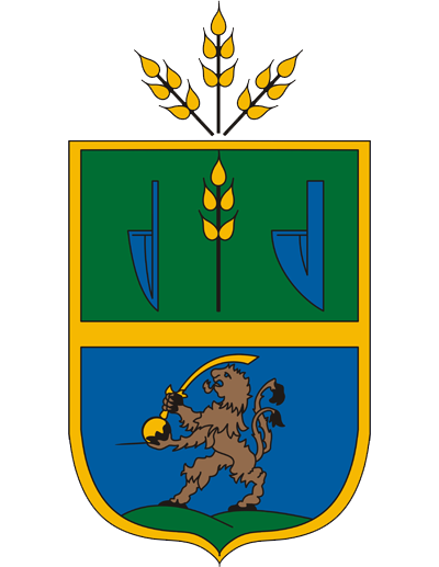 A sisakhelyen három szál arany színű kalász található ,ebből a középső a címer függ&leges tengelyében helyezkedik el, míg a másik kettő szélre hajló. A kalászokban a szemek száma öt.