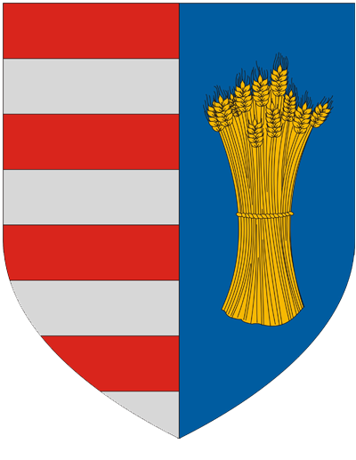 Egy háromszögű, középen hasított pajzs, melynek jobb szélső mezőjében az Árpádok ősi színei, vörös és ezüst sávok láthatók a falu Árpád-kori alapítására utalva. Eme szimbólum a település történetének legfontosabb eseményét, az Árpád-kori első megtelepedést fejezi ki.